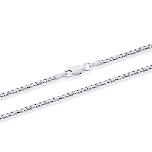 MAZZERI Rhodium Plated 925 Sterling Silver 1mm & 1.6mm Italian Box Chain Necklace 16" - 24"