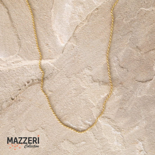 MAZZERI Solid Gold Plated Sterling Silver Italian 1.6mm Diamond-Cut Braided Rope Chain Necklace for Men Women, 925 Sterling Silver Made in Italy